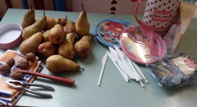 Mercoledì, Rossi e Arancioni hanno preparato il loro dolce: castagne, marmellata di marroni, frutta fresca… Abbiamo sbucciato, tagliato, versato, pestato i biscotti e assemblato il nostro dolce d’autunno!